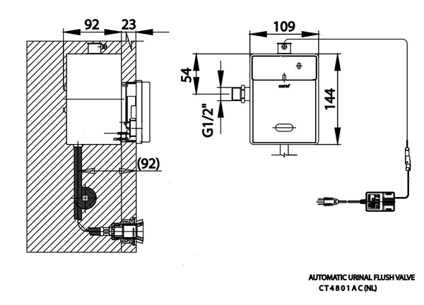Van xả cảm ứng tiểu nam âm tường Cotto CT4801AC(NL)